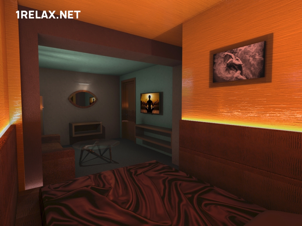 Три комнаты массажного салона стильно и оригинально оформлены, а интерьер располагает к безмятежному и спокойному отдыху. В каждой комнате есть роскошный подиум с матрасом, а также мягкие диваны и кресла. Для водных процедур обустроены душ или джакузи, комфортную температуру обеспечит кондиционер.